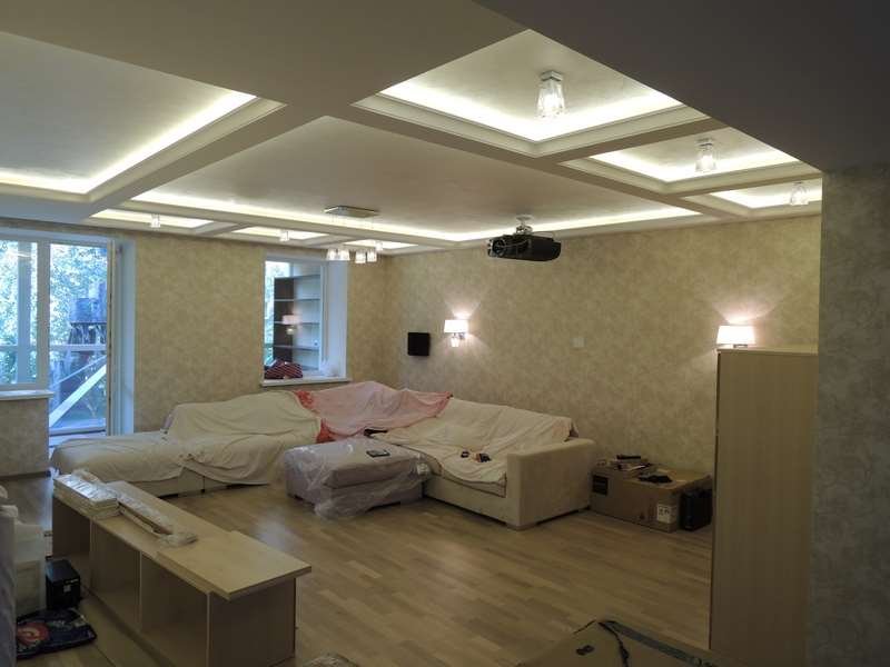 Ремонт гостиной и кухни в коттедже